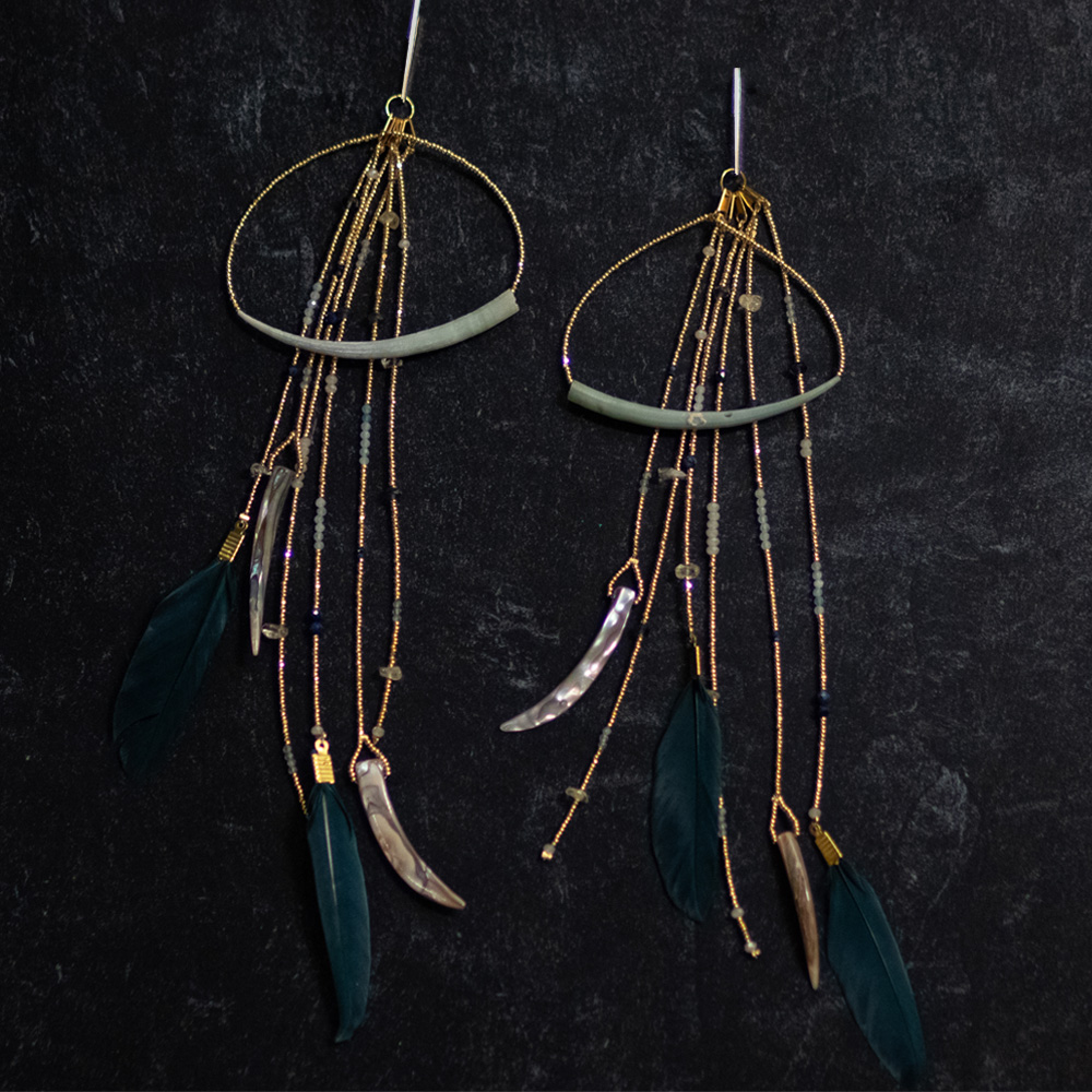 Be the first to review “Tsurai Crescent Earrings · Dentalium + Gemstones · Gold · Origin Edition”